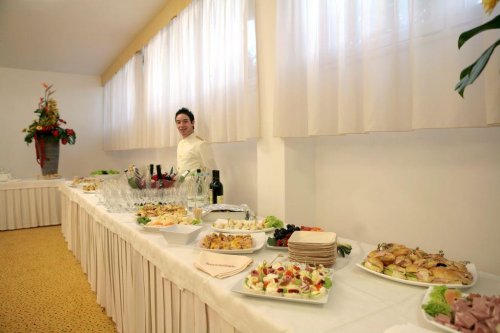 Una ricca colazione a buffet viene servita nell'apposita accogliente sala dalle ore 7:00 alle 10:00; gli ospiti potranno gustare la tipica piadina, formaggi, salami, torte e brioches di pasticceria, biscotteria, yogurt, insalate di frutta, uova, bacon, spremute di agrumi e cereali.