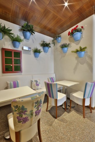 La tranquillità dell'ambiente e' completata da un delizioso giardino interno, un bar e ristorante con terrazza esterna che consentono di immergersi in un'atmosfera di assoluto relax tra le dolci colline di Conegliano, parcheggio.