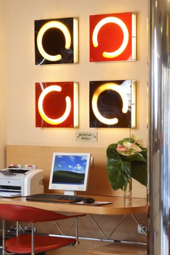 Tutte le 80 camere, distribuite su 5 piani serviti da ascensore, sono dotate di impianto di climatizzazione, TV color satellitare, connessione ADSL a Internet, minibar, cassaforte.