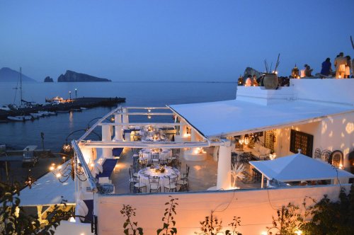 A pranzo e a cena il Ristorante, esterno all’ hotel, offre menù tipici eoliani e specialità di mare.