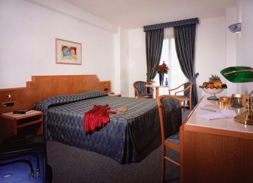L'hotel dispone di 46 camere (fra cui le eleganti Suite), tutte dotate di aria condizionata, telefono, frigobar, TV color satellitare con pacchetto Sky Italia, Pay tv, parquet o moquette, presa modem-fax, chip key, cassaforte, bollitore per il tè, asse e ferro da stiro, balcone o ampia finestra, bagno privato con box doccia o vasca, asciugacapelli.