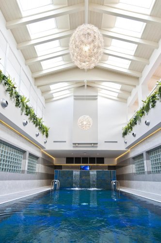 Il moderno Luoge Bar gode di una suggestiva vista sulla piscina coperta e offre momenti di relax e svago.