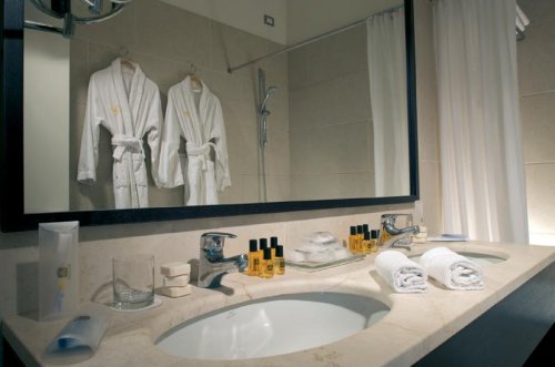 disposizione degli ospiti aria condizionata, TV color satellitare, telefono con linea diretta, frigobar, connessione a Internet, cassetta di sicurezza, bagno privato con asciugacapelli.