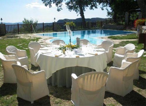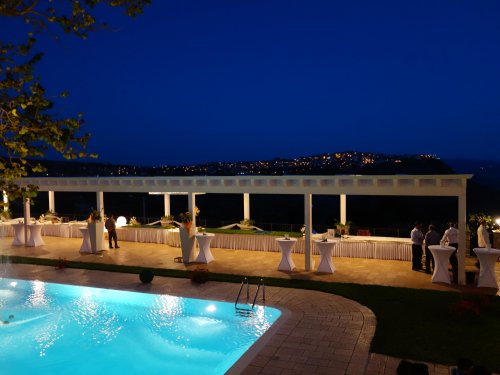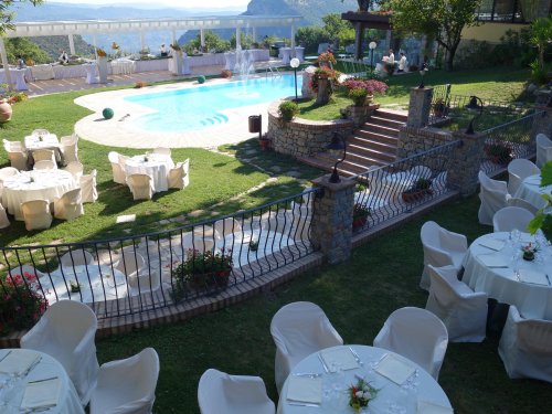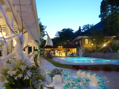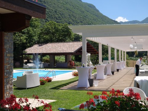 La struttura offre inoltre due accoglienti sale interne - di cui una con TV e camino, l'altra con pianoforte a coda - e dispone di una sala con pareti in vetro e due gazebo in giardino.
