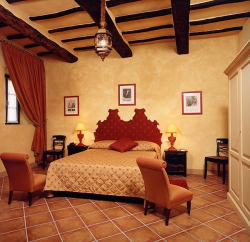 Gli 8 edifici del borgo sono stati ristrutturati con lo stesso spirito, legati nei particolari da un filo conduttore cromatico (il rosso e il giallo) e da un arredamento caratterizzato da dettagli unici della stessa entità per creare 72 camere (di cui 6 junior suite e 13 suite).