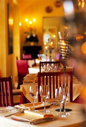 Il Ristorante "La Voliera", elegante e raffinato, propone nuovi sapori che esaltano la naturalità e la qualità degli ingredienti. Disponibilità di una magica terrazza dove cenare a lume di candela incantati dalla vista sulle dolci colline senesi e sullo spettacolare green.