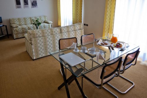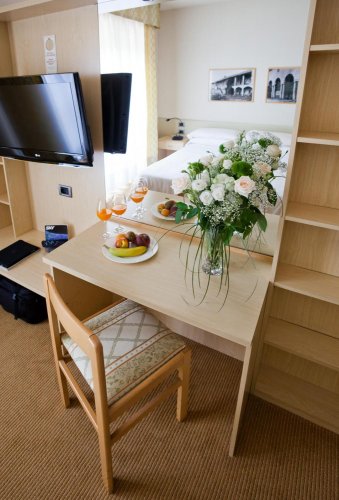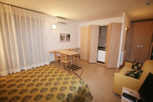 Inoltre l'hotel dispone di 2 Family Suite con soggiorno e 4 posti letto e di 10 appartamenti con angolo cottura attrezzato, lavatrice, aria condizionata, TV color satellitare, telefono con linea diretta, bagno privato.