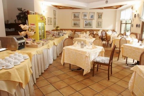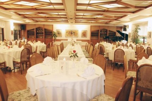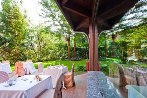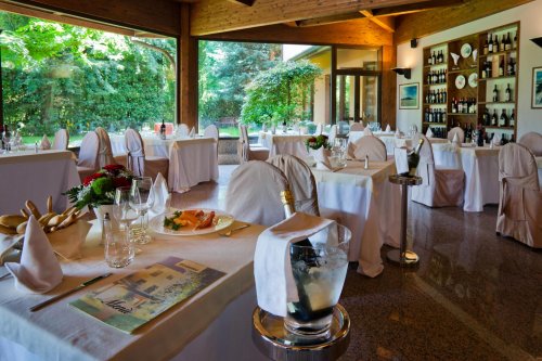 Il ristorante propone piatti della cucina italiana ed internazionale dal menù alla carta, serviti nella suggestiva veranda con ampie vetrate sul giardino.