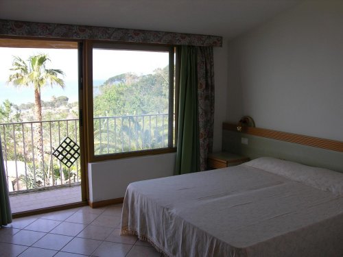 Gli alloggi, tipo hotel, dispongono di veranda o balcone con e senza vista mare e sono situati nella zona Alta, raggiungibile da una strada in salita, rialzata dal mare e dai servizi, e la distanza dal mare varia dai 100 ai 200 mt.