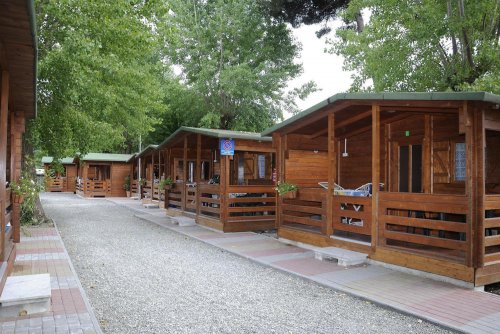 Gli 86 bungalow in legno sono di nuova costruzione, tutti elegantemente arredati e dotati di impianto di climatizzazione e riscaldamento, possono ospitare 2 , 4 o 6 persone.