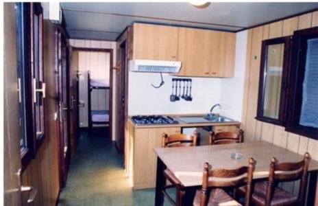 La zona letto è divisibile dalla zona cottura con porta a soffietto, cameretta con letti a castello e armadio, bagno e veranda.