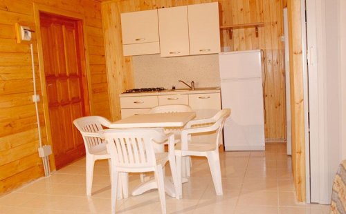 Il villaggio dispone di case mobili con ogni comfort, Bungalow in legno - monolocali, bilocali, trilocali e appartamenti per 6 persone - Appartamenti in muratura con aria condizionata.