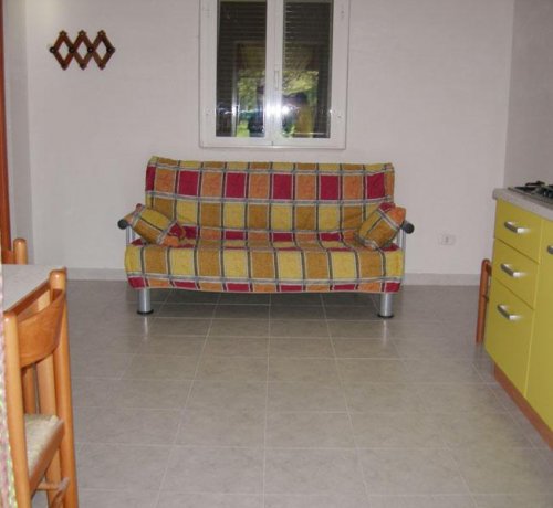 Appartamento Turchese: bilocale in muratura da 4 posti, composto da camera con letto matrimoniale e armadio, soggiorno/pranzo con divano letto matrimoniale e angolo cottura, bagno privato con doccia, water, lavabo, bidet, veranda attrezzata.