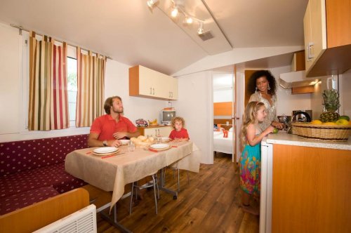 Le case mobili, Trilocali per 5 persone, hanno una superficie di circa 24 mq e possono ospitare fino a un massimo di quattro adulti e due bambini. Dotate di un arredamento moderno ed essenziale, le case mobili dispongono di una camera da letto matrimoniale e una camera da letto con due letti singoli, con l’aggiunta di un terzo letto per un bambino.