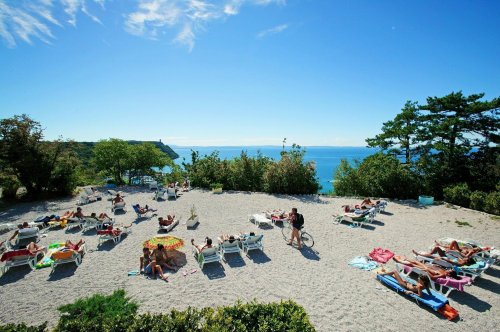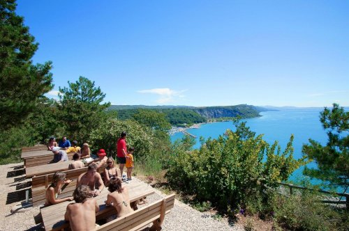 Il Camping Village Marepineta sorge sulla baia di Sistiana, a pochi chilometri da Trieste e occupa un'area incantevole, di fronte alle acque blu dell'Adriatico, fra le falesie che cadono a picco sul mare.