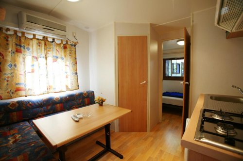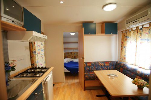 Le case mobili, trilocali per 4 persone, hanno una superficie di circa 21 mq e possono ospitare fino a un massimo di 4 adulti.