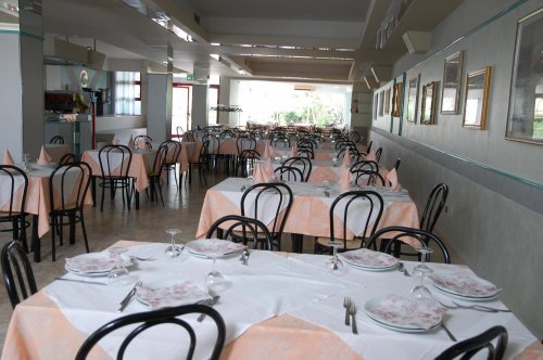La struttura dispone di un'ampia sala ristorante climatizzata per circa 200 coperti. La cucina è curata personalmente dai proprietari che sapranno deliziare gli ospiti con le ottime specialità preparate giornalmente come le famose olive all'ascolana oppure i maccheroncini di Campofilone tirati a mano.
