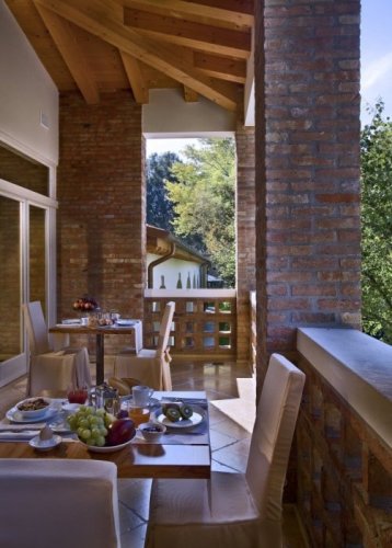 La struttura riproduce una tipica costruzione veneta con il corpo centrale a base quadra e due ali porticate con orientamento Nord/Sud; un ambiente a misura d’uomo nel quale rifugiarsi tra un appuntamento d’affari e l’altro, con camere comode e silenziose, ambienti comuni accoglienti, il calore e la familiarità di un personale attento alle esigenze dei propri ospiti.