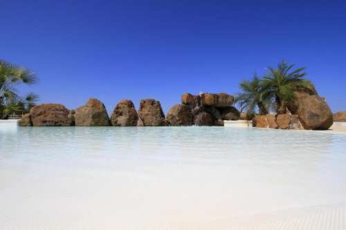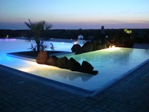 La struttura dispone di due suggestive piscine, usufruibili gratuitamente durante la maggior parte dell'anno, immerse nei vigneti e affacciate sulla splendida costa del mare di Capo Nieddu con vista sull’Isola di Mal di Ventre.