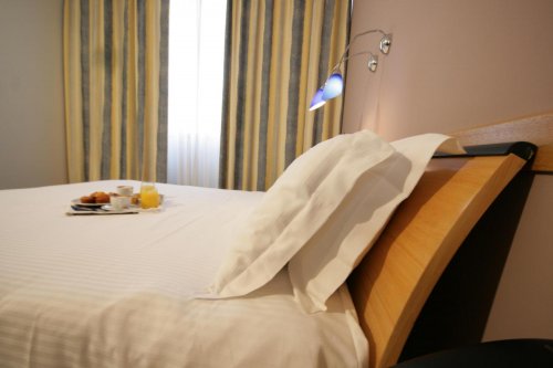 Le stanze sono caratterizzate da arredi sobri ed essenziali e dispongono di telefono, TV color, minibar, aria condizionata, bagno privato con box doccia o vasca.