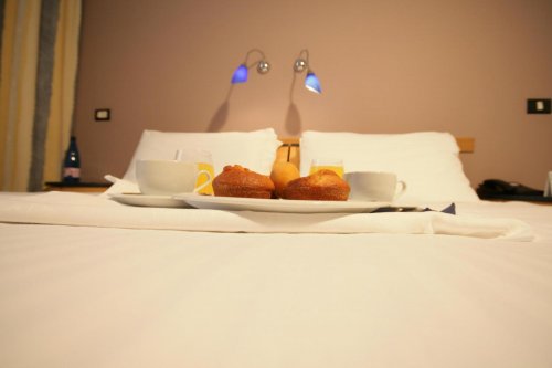 La prima colazione è la specialità della struttura, con il suo buffet internazionale che offre prodotti freschi e genuini. Ogni giorno, tra le 07:00 e le 10:30 viene servita una grande varietà di dolci fatti in casa e biscotti, cereali, yogurt, salumi e formaggi. Per chi desidera una colazione più energetica, vi è anche una zona dove gli ospiti possono servirsi di uova strapazzate, salsicce e bacon, nonché vari tipi di pizza, focaccia e pane.