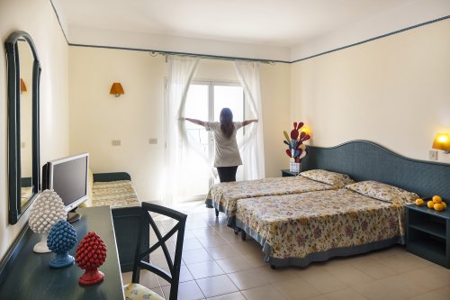 Il complesso dispone di 600 camere fra Standard e Superior, collocate nell’edificio centrale e in 16 palazzine adiacenti a più piani che discendono verso il mare e dotate di terrazzo o balcone arredato.