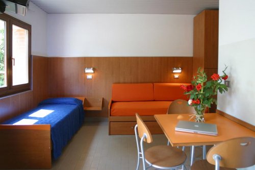 Ideale per piacevoli soggiorni alla scoperta dell'arte e della cultura della città universitaria o per soggiorni di lavoro, il complesso dispone di ampia piscina con solarium, vasto parco alberato, un parco giochi per bambini, Internet Point gratuito, sevizio bus per il centro, lavanderia a gettoni e parcheggio gratuito.