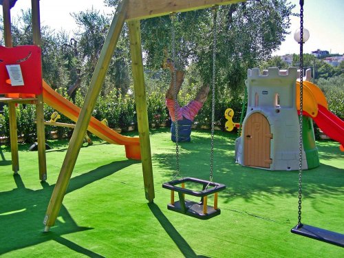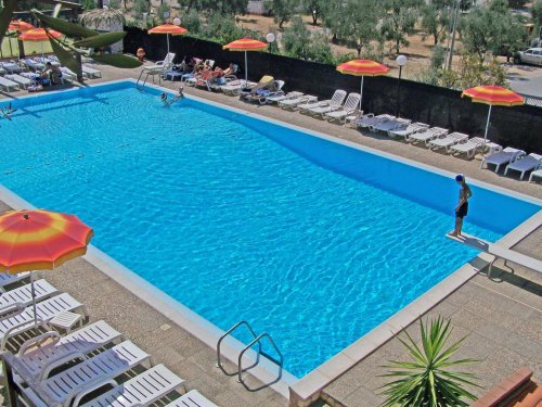 La struttura dista pochi metri dal mare e dispone di servizio navetta per la spiaggia attrezzata, piscina con solarium, bar, campo polivalente per attività sportive, sala giochi, sala baby club, bazar e parcheggio interno.