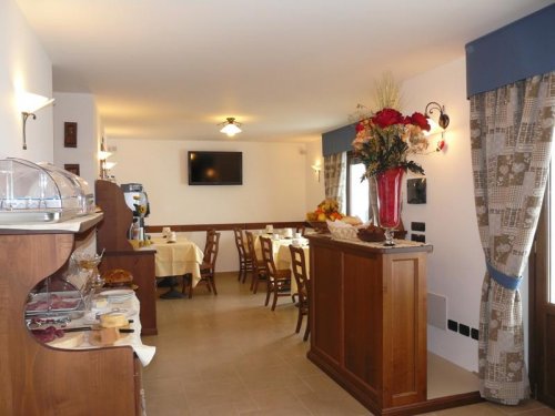 La ricca colazione a buffet è a base di prodotti locali e torte casalinghe e viene servita nella sala panoramica con vista sulle montagne.