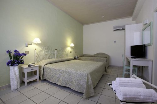 Le 160 camere, di diverse tipologie, distribuite nel corpo centrale e in vari caseggiati intorno al parco, sono tutte dotate di TV color, telefono con linea diretta, aria condizionata, bagno privato.