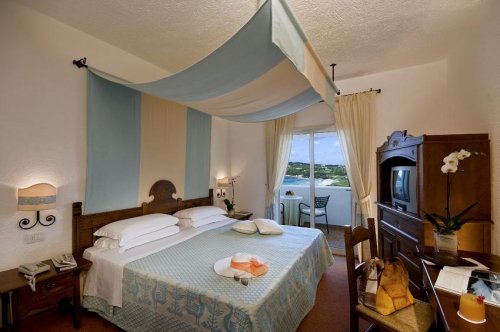 L’hotel offre 125 camere arredate in stile sardo con mobili in legno massello, tessuti tipici e complementi in ferro battuto.