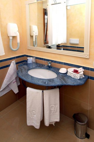 L'hotel dispone di 77 camere di diversa tipologia (alcune per non fumatori) dotate di aria condizionata, telefono a selezione diretta, connessione Internet Wi-Fi gratuita, TV color satellitare, frigobar, cassetta di sicurezza.