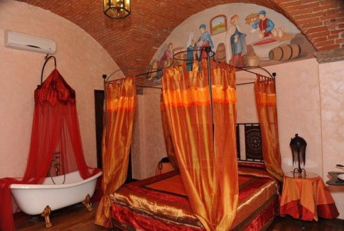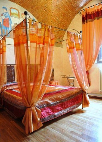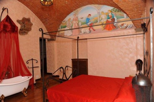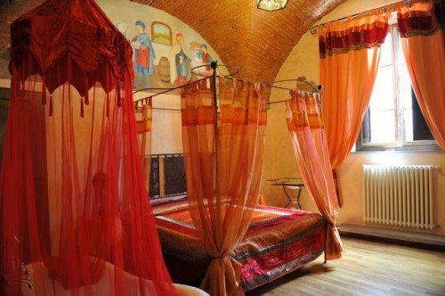 Le camere e le Suites sono sapientemente affrescate e arredate con mobili medievali, tessuti esclusivi e oggetti di notevole raffinatezza.
