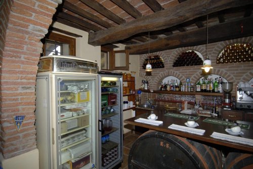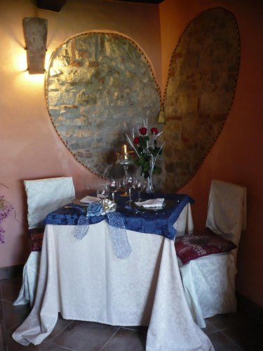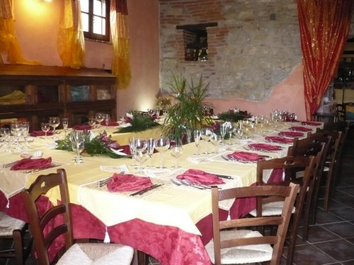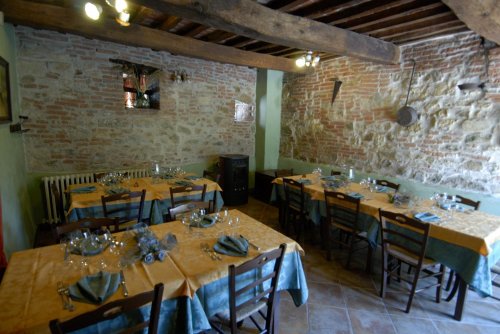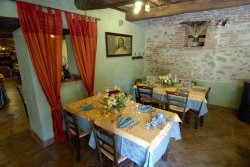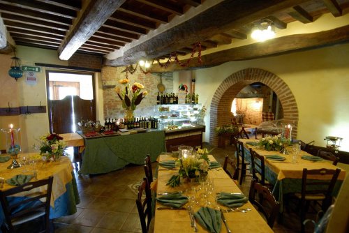 Il ristorante, a piano terra, si trova all'interno di antiche stalle, granai e cantine ristrutturate, dove travi di legno, grandi archi in mattoni e nicchie sono la testimonianza dell'architettura di un'epoca lontana riportata alla luce con accurate opere di restauro.