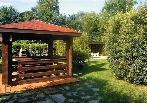 La casa vacanza, circondata da un verdeggiante parco, offre un atmosfera di quiete e relax e dispone di gazebo attrezzato, barbecue, area giochi, servizio noleggio biciclette, piscina e connessione Wi-Fi a Internet.