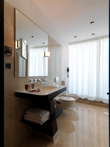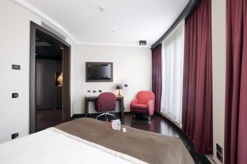 - Junior Suites, dotate di ingresso separato e di un salottino privato, cassetta di sicurezza, TV color satellitare LCD, Pay per View, aria condizionata autonoma, tavola da stiro (sebbene sia anche disponibile servizio di lavanderia con consegna in giornata), insonorizzazione totale, tende oscuranti, bagno privato con accappatoio e ciabatte di cortesia.