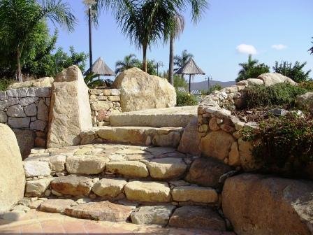 L'ingresso del resort è segnalato da una roccia incisa col logo, sulla sinistra.