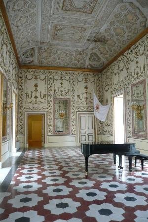 Alcune camere si distinguono per i soffitti con travi in legno decorate, soffitti con volte a crociera o a cassettoni, e preziosi mobili d'epoca.