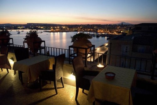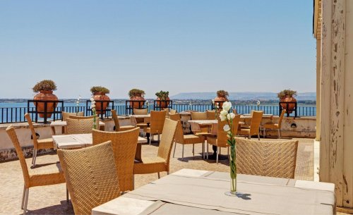 Il Ristorante all'ultimo piano con ampia terrazza estiva, offre le specialità della cucina locale in un contesto di rara bellezza, con una vista mozzafiato sui tetti di Ortigia e sul mare.