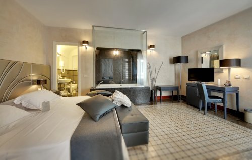 Le camere Deluxe comprendono inoltre un angolo benessere con vasca idromassaggio.
