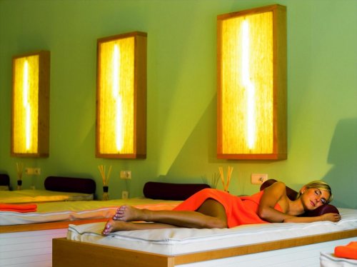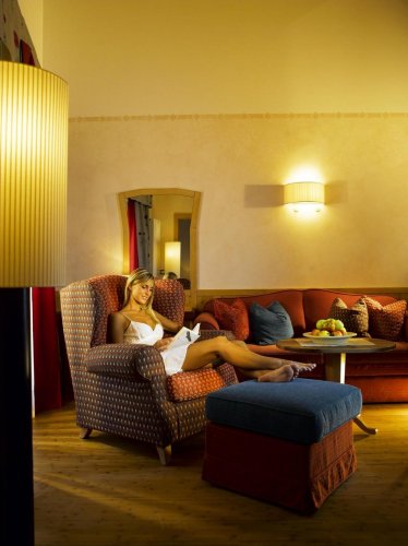 L'area Wellness estesa su 1300 mq, dispone di 7 diverse saune, sale relax con lettini ad acqua, angoli per le coccole, splendido prato, piscina coperta, piscina all’aperto con grande scivolo (riscaldata da maggio a settembre).