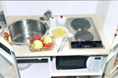 Deluxe Room di 35 mq (massimo 4 persone), con letto matrimoniale, divano letto che si trasforma in 2 letti singoli, tavolo con sedie, doppi vetri, aria condizionata, TV color, telefono, cassaforte, piccola cucina con forno a microonde, frigorifero, bagno in travertino con vasca, doccia, asciugacapelli.