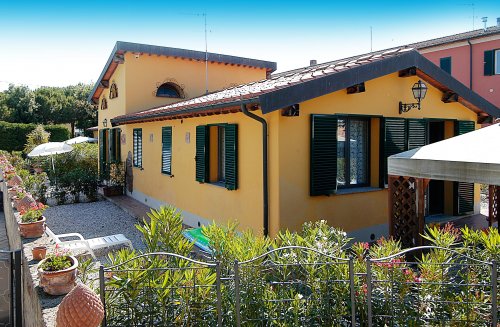 - Appartamento (circa 65 mq) ubicato al primo piano con ingresso indipendente. Resede di circa 120 mq con gazebo, barbecue, due lettini, tavolo e sedie, soggiorno con angolo cottura (dotato di forno) e divano-letto matrimoniale, un ampia camera matrimoniale, una camerina con un letto singolo più uno estraibile, bagno con doccia e finestra. L'appartamento è dotato di due posti auto privati.