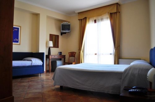 Le 16 camere in stile mediterraneo sono dotate di TV color satellitare, Sky TV, Pay per view, telefono, frigobar, impianto di climatizzazione, cassaforte, connessione Wireless a Internet, bagno privato con asciugacapelli, set di cortesia.