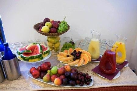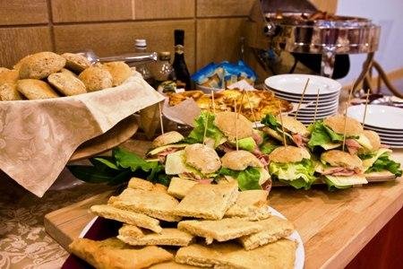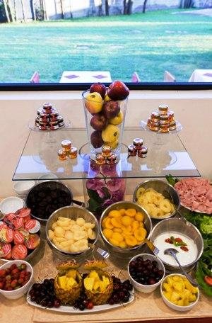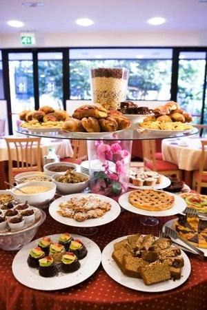 Nella moderna e luminosa Sala per le colazioni al mattino viene servito un gustoso buffet a base di prodotti genuini e di ottime produzioni pasticcere, con dolci fatti in casa, torte e biscotti di ogni varietà.
