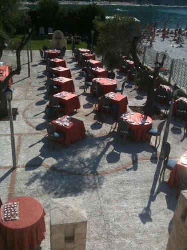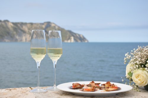 Il ristorante, particolarmente curato e di charme, nella bella stagione si affaccia dalla romantica terrazza panoramica prospiciente l’incantevole Baia di Portonovo.