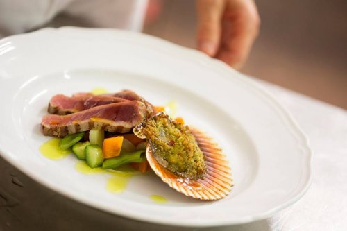 La cucina, curata e ricercata, propone gustose preparazioni di piatti marchigiani e non, prevalentemente a base di pesce, accompagnate da una vastissima cantina con una selezione di etichette dell'intero panorama enologico mondiale.