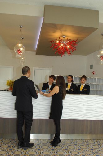 Le ampie camere sono tutte dotate di TV color, telefono, balcone, aria condizionata, frigobar, bagno privato con asciugacapelli, set di cortesia, biancheria.