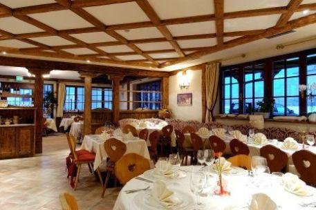 La Sala Ristorante, arredata con estrema cura in stile tirolese, viennese e bavarese, offre un'atmosfera calorosa e informale per gustare gli squisiti piatti della cucina tipica locale, accompagnati da un'ottima selezione di vini.