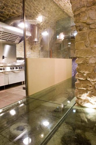 Le scelte costruttive hanno lasciato inalterato lo spazio originale, e grazie al sapiente uso del vetro e a una particolare illuminazione, sono visibili le caratteristiche dell'antica grotta.